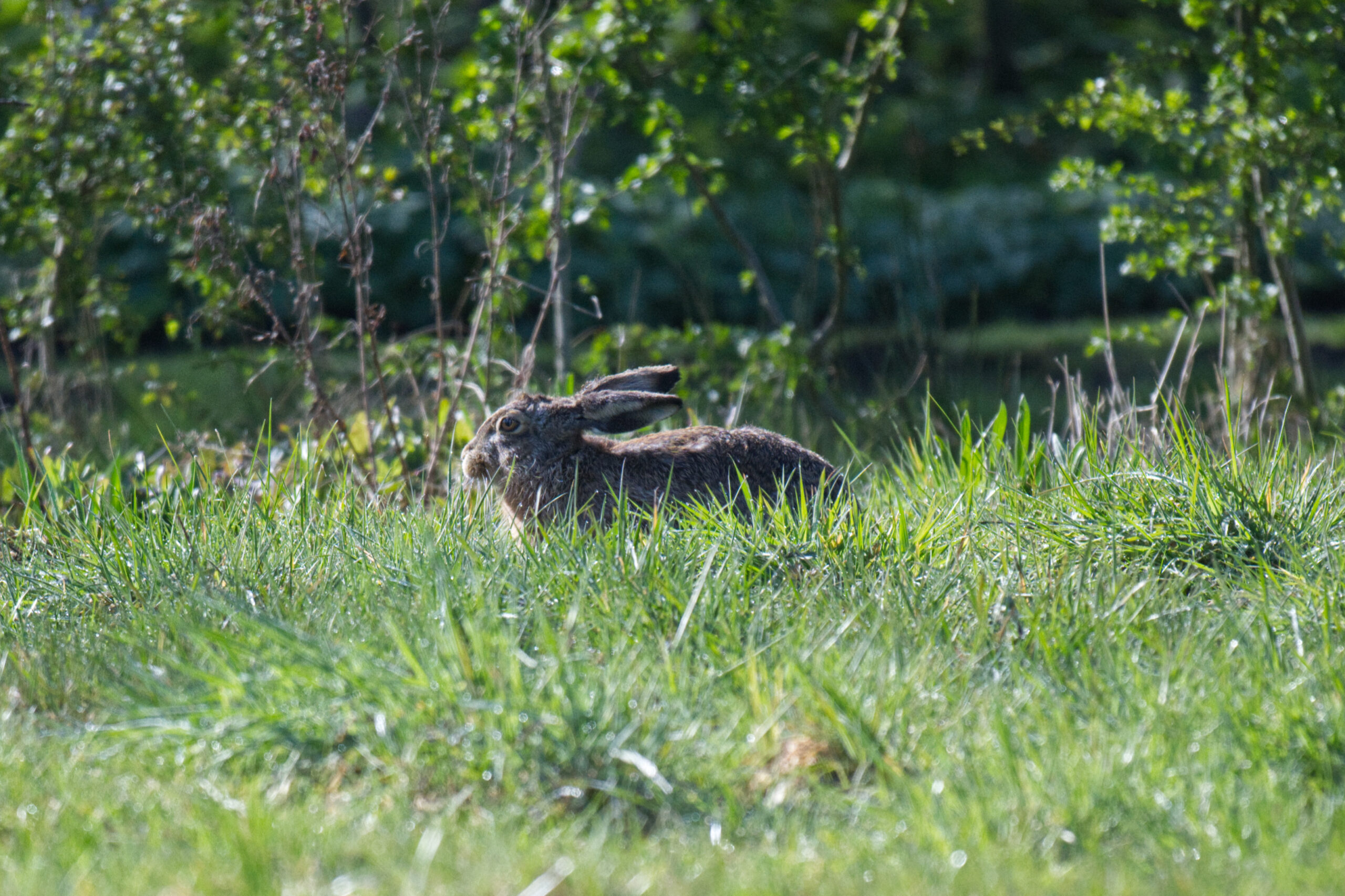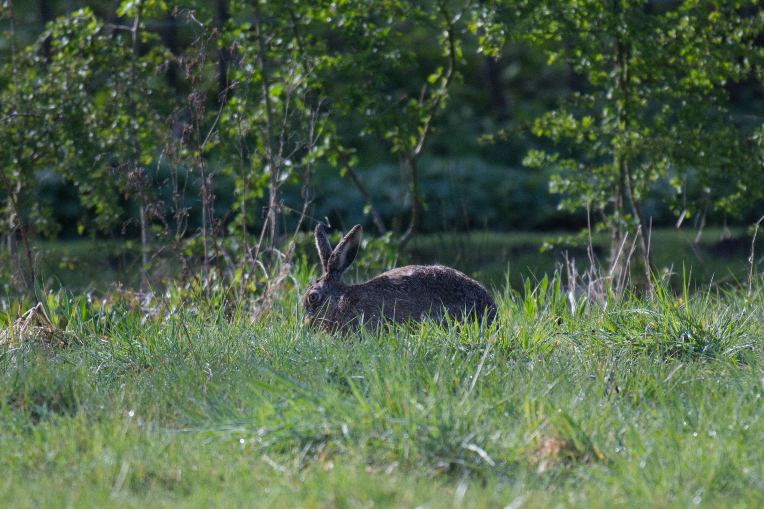 Ik heb nog nooit echte jonge haasjes in onze weide gezien. Los van de rondzwervende katten zou het een redelijk fijn plekje moeten zijn: weinig verstoring, redelijk hoog gras om zich in te verbergen voor, bijvoorbeeld, de buizerd.